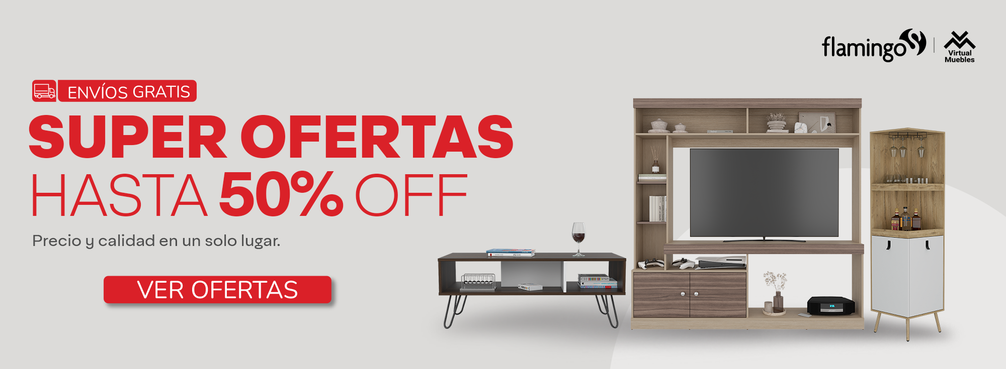 Mesa para TV Tunez, Blanco con Café Claro, hasta 70" pulgadas